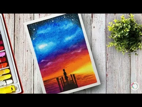 Tutorial Gradasi Warna Menggambar Pemandangan Bulan Purnama Crayon Oil Pastel - Source